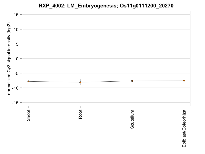For this gene, the raw signal intensity (median of replicates) for all samples is below 100.