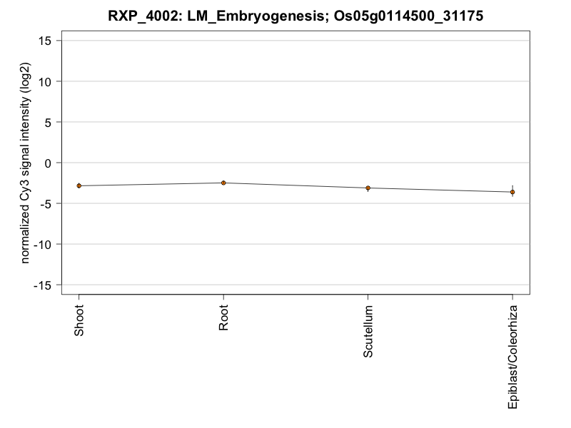 For this gene, the raw signal intensity (median of replicates) for all samples is below 100.